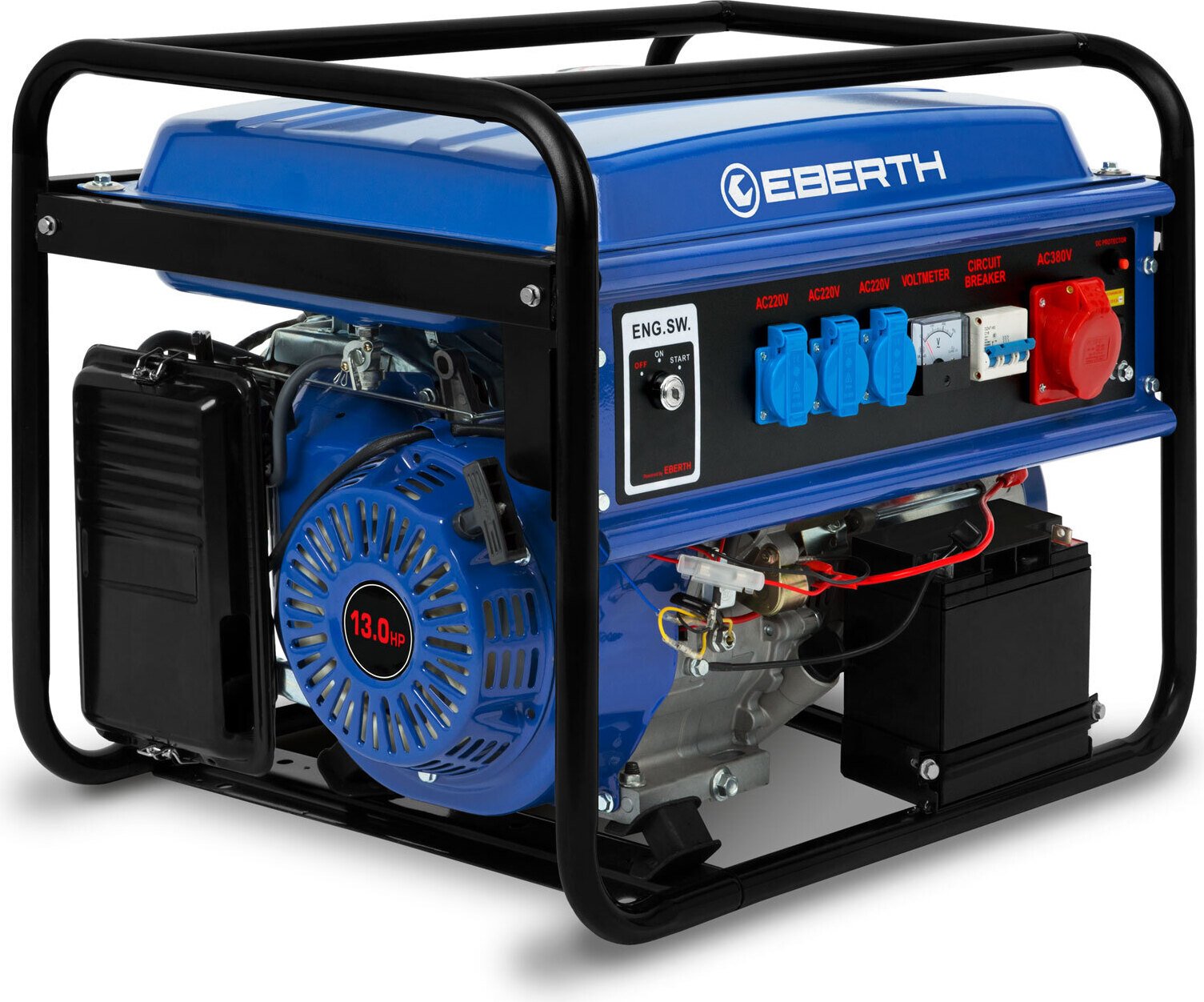 EBERTH 5500 Watt Groupe électrogène de secours Groupe électrogène avec démarrage électrique, moteur à essence 13 CV, 4 temps, triphasé, 1x 400V, 3x 230V, 1x 12V, AVR