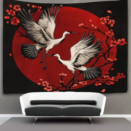 kaiyun Grue japonaises Tapisserie,Gravure sur bois artistique Décoration Murale En Tissu Pour La Chambre À Coucher Le Salon Le Dortoir,150cmx200cm