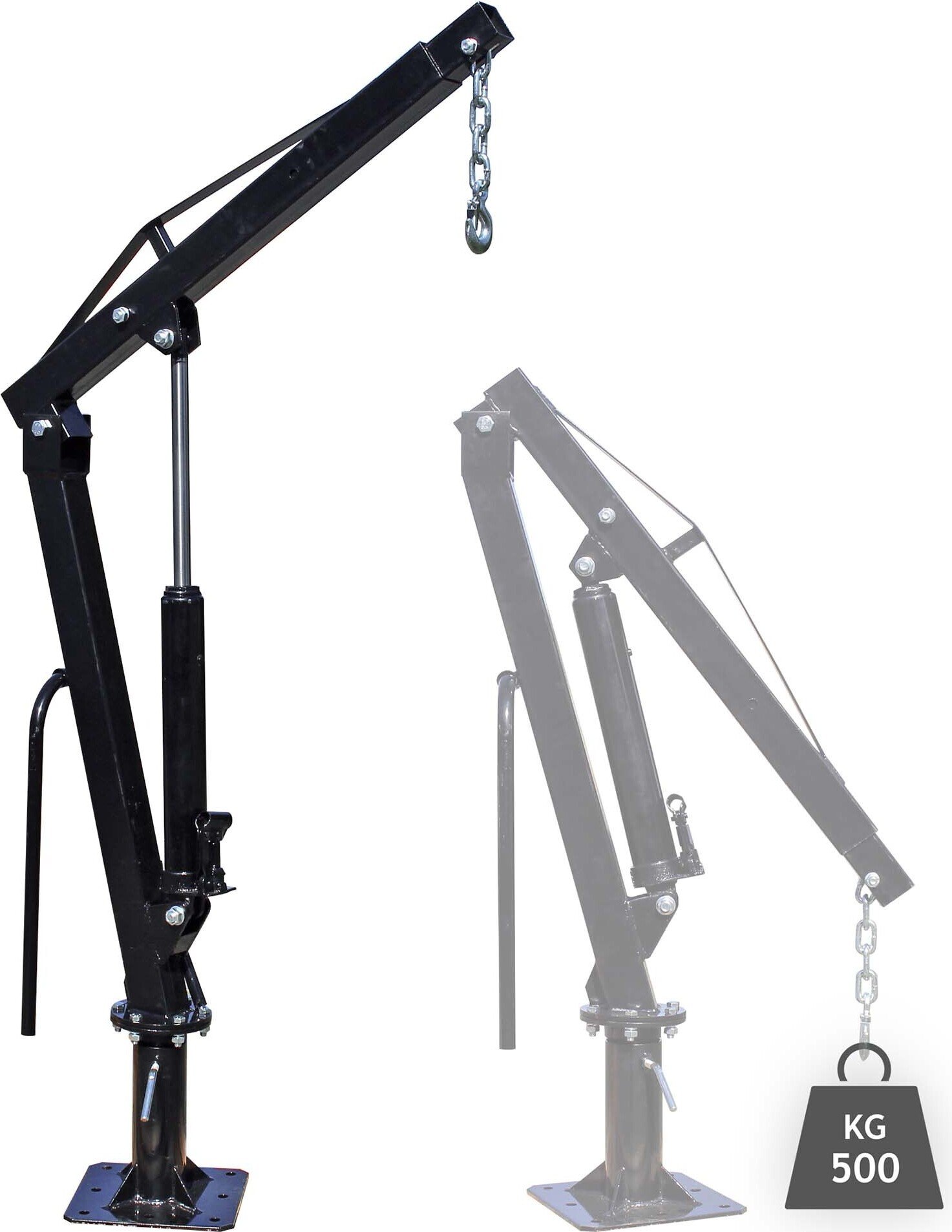 Wiltec Grue de levage pour Pick up ou Remorque – Charge max. 500 kg – avec Tête pivotante à 360° et Socle massif pour Ancrage au sol – Chèvre monte charge chargement et déchargement