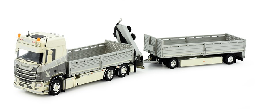 TEKNO, SCANIA Next génération R650-V8 6x2 porteur avec grue et remorque 1+1 E...