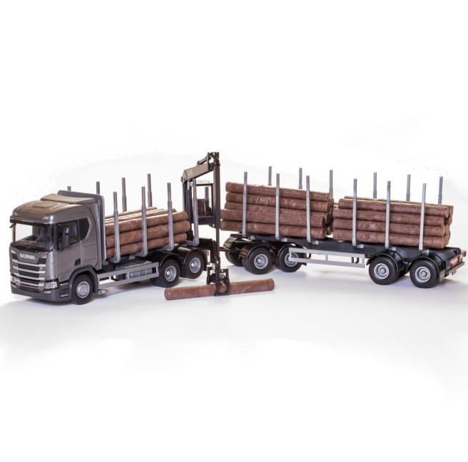 EMEK - Camion gris avec grue de chargement et remorque transport de bois – SC...