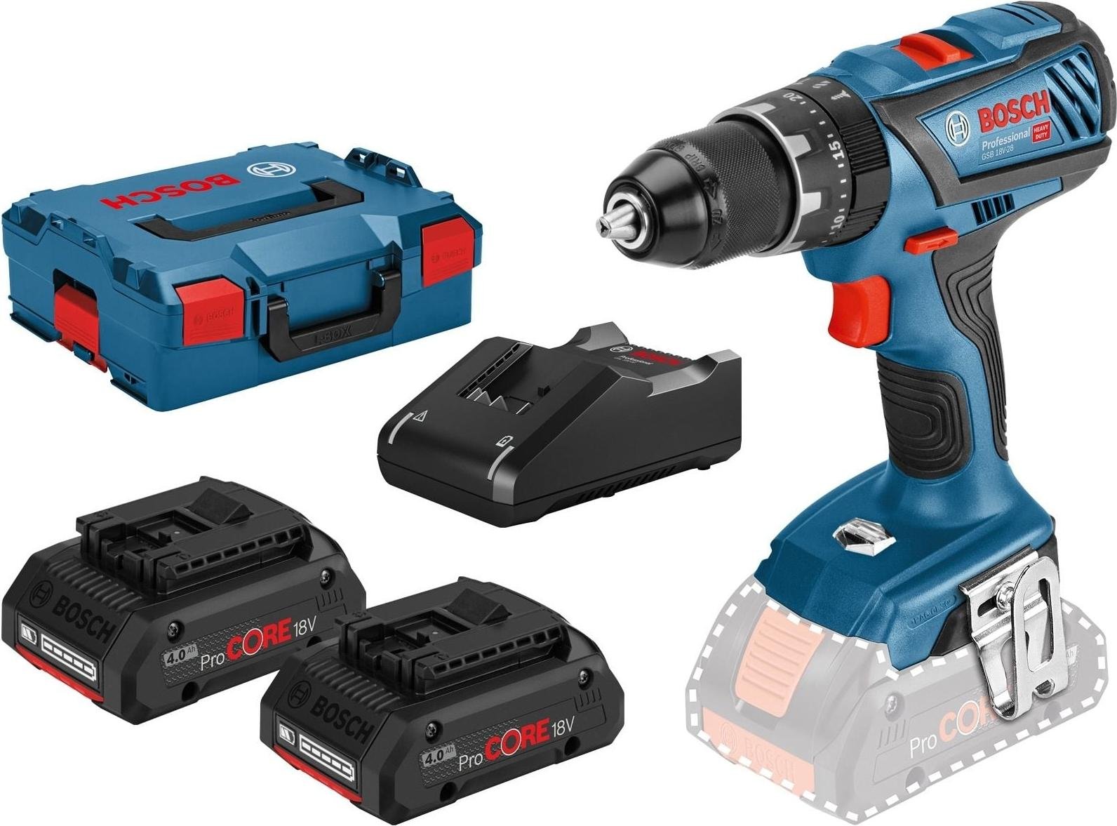 Bosch GSB 18V-28 Professional Perceuse-visseuse à percussion sans fil 18 V 63 Nm + 2x batterie ProCore 4,0 Ah + chargeur + L-Case