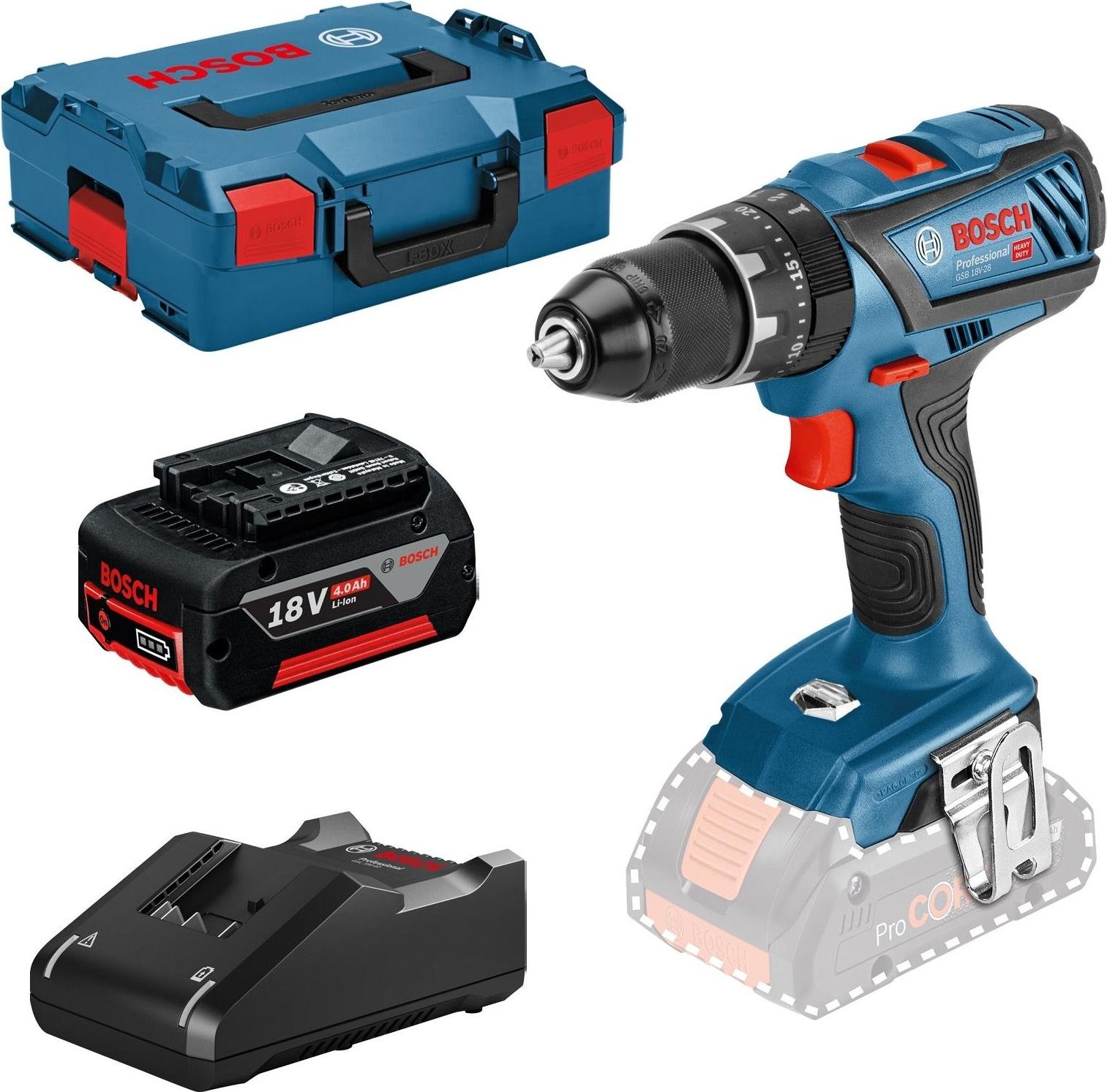 Bosch GSB 18V-28 Professional Perceuse-visseuse à percussion sans fil 18 V 63 Nm + 1x batterie ProCore 4,0 Ah + chargeur + L-Case