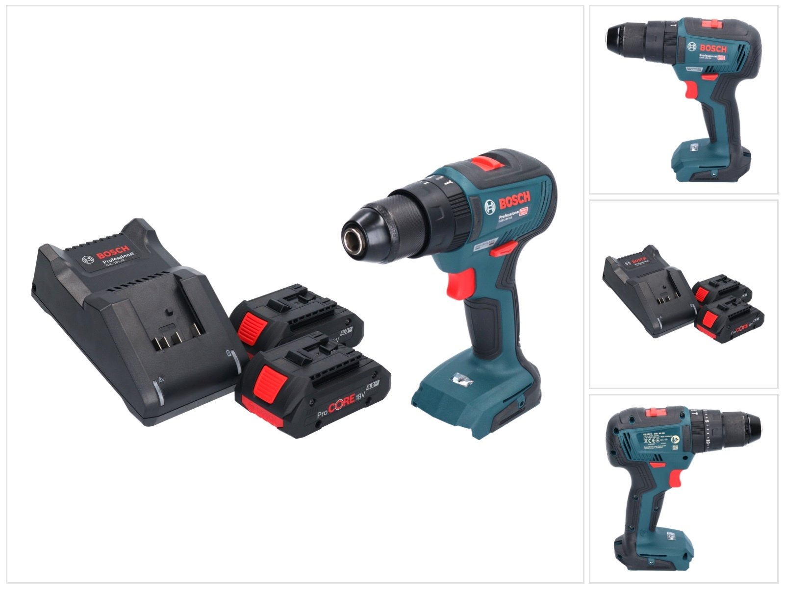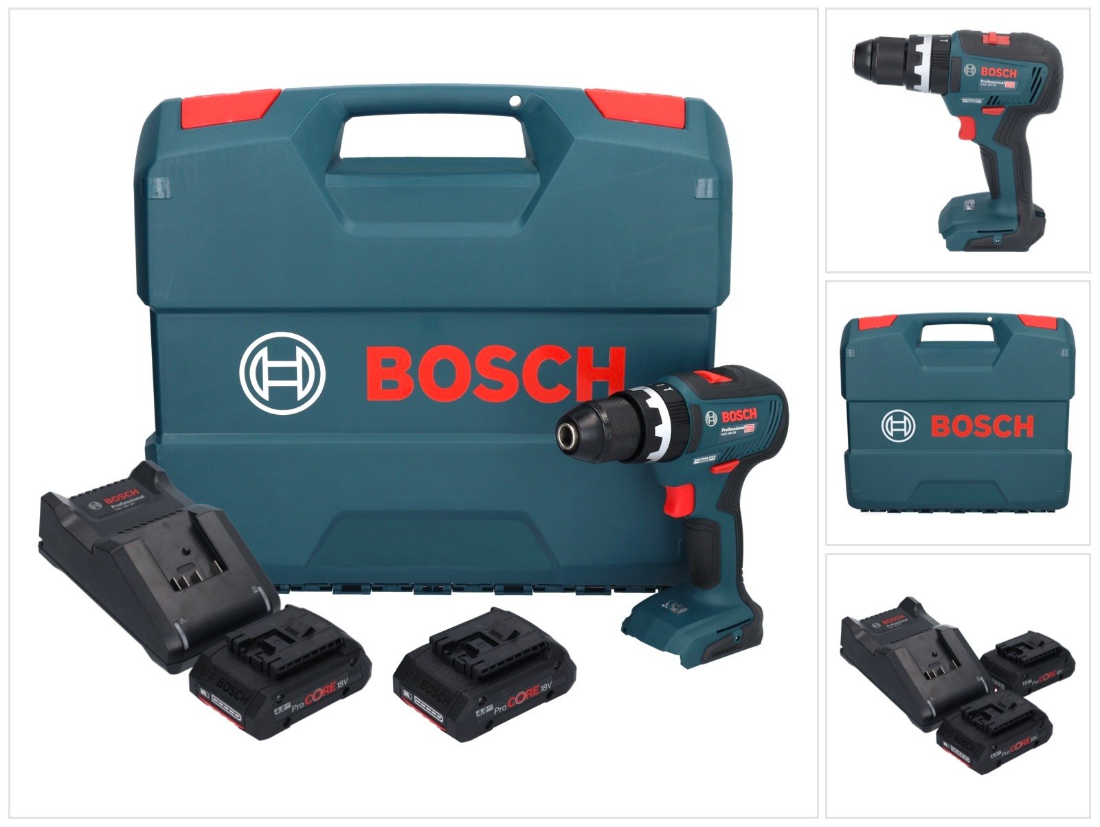 Bosch Professional 18V System perceuse-visseuse à percussion sans-fil GSB 18V-55 (moteur sans charbon, 55 Nm, 1 750 tr/min, avec 3 batteries ProCORE 4.0Ah, chargeur GAL 18V-40, dans L-Case)