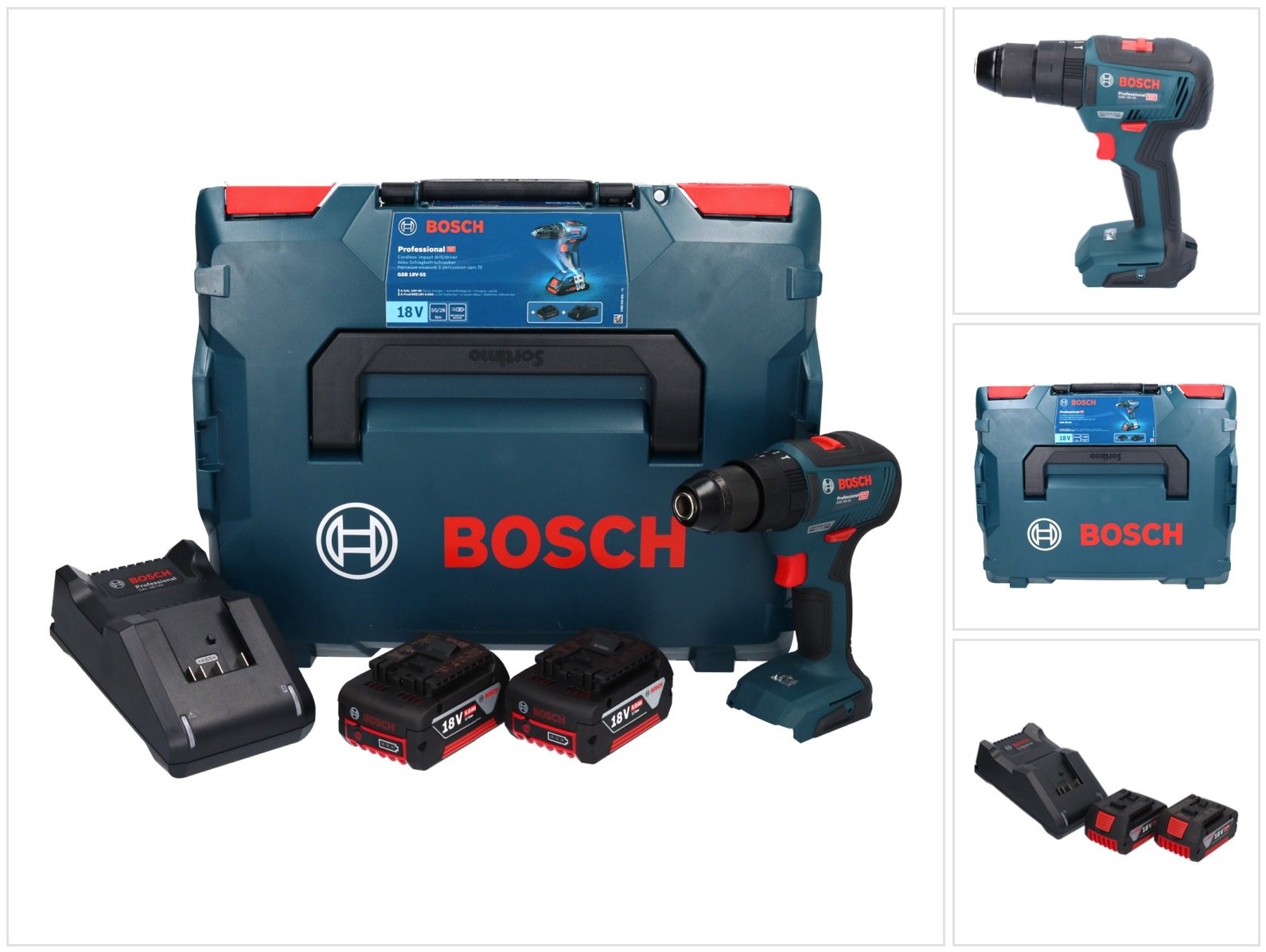 Bosch Tool Kit : Perceuse-visseuse à percussion sans fil GSB 18V-55 / 2x batterie 3,0 Ah + chargeur + L-Boxx - 0615990M0E