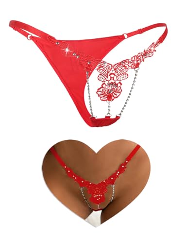 comeondear String Ficelle Femme Sexy Érotique sous Vetements Feminins G-String Chic Grande Taille Culotte Tanga Bijoux Slip Taille Basse Underwear Thong T-Back 1-Rouge,S-M