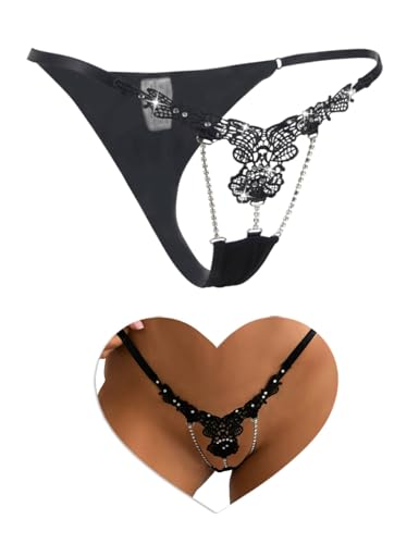 comeondear String Ficelle Femme Sexy Érotique sous Vetements Feminins G-String Chic Grande Taille Culotte Tanga Bijoux Slip Taille Basse Underwear Thong T-Back 1-Noir,L