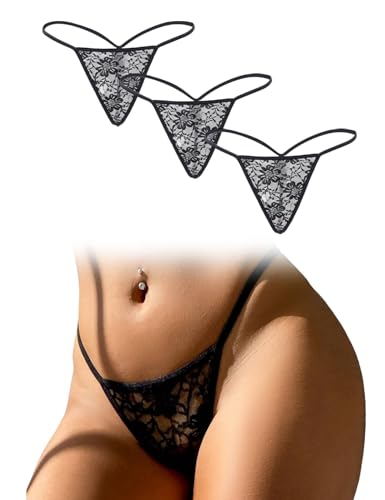comeondear G-String Ficelle Femme String Chic sous Vetements Feminins Grande Taille Culotte Tanga Dentelle Stretch Slip Taille Basse String Underwear Thong T-Back Lot de 3(Noir,S-M)