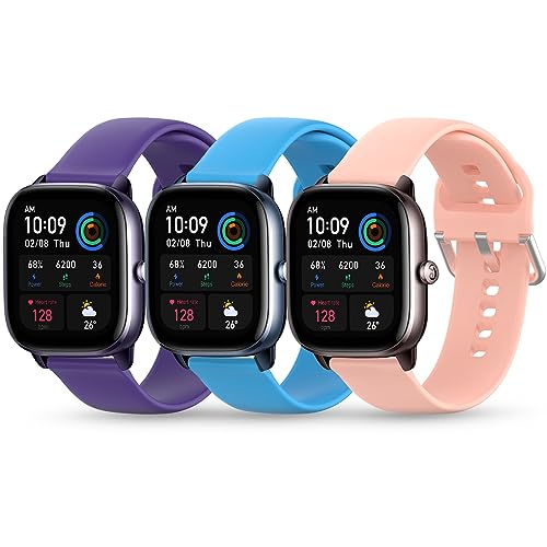 Bexido Lot de 3 bracelets de rechange en silicone souple de 20 mm compatibles avec Amazfit GTS/GTS 2/GTS 2 Mini/GTR 42 mm/Amazfit Bip U Pro/Bip S/Bip Lite
