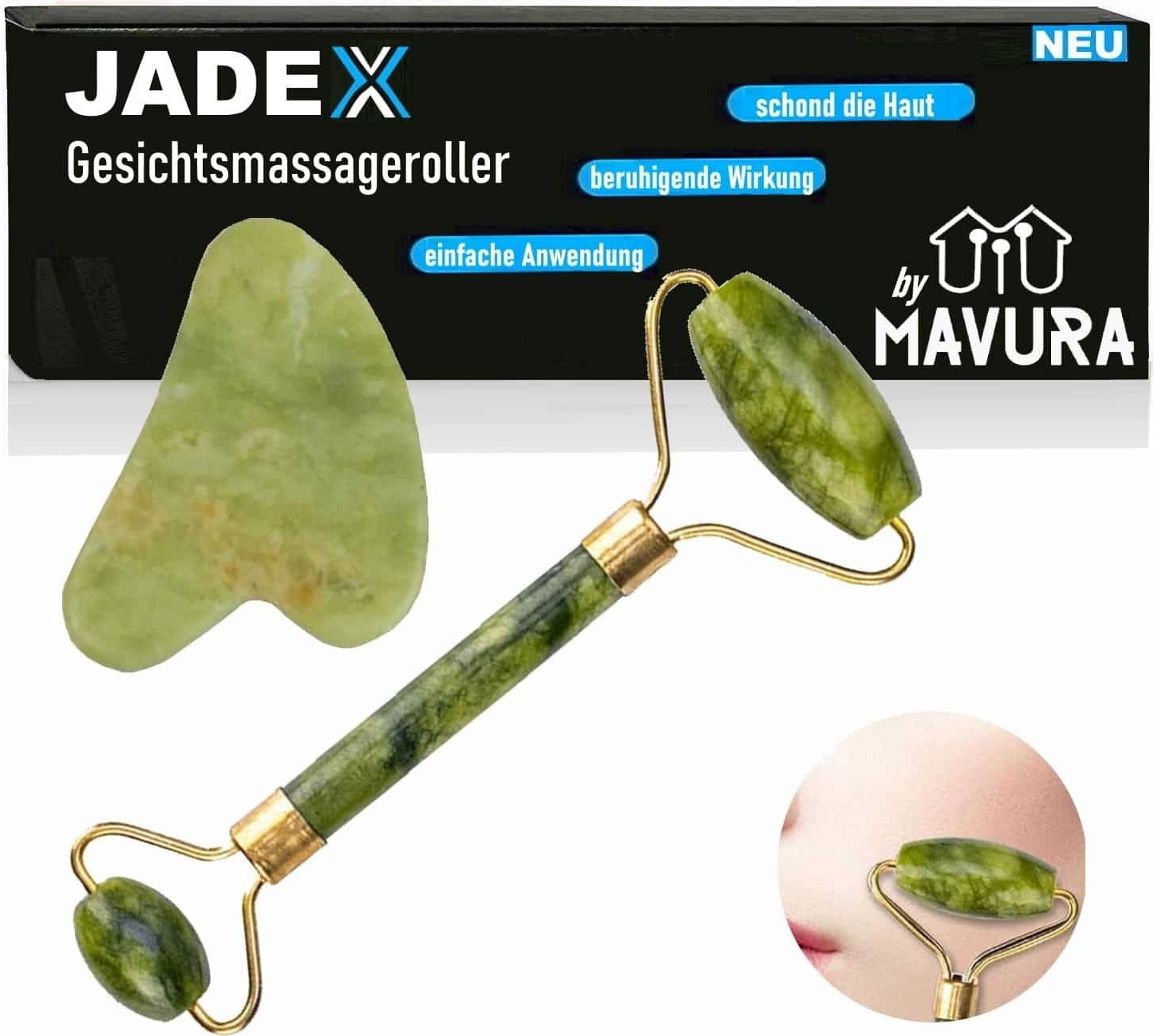 JADEX Premium Jade Roller Set Face Roller Masseur Gua Sha Massage du visage