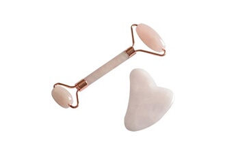 Kit de massage facial 2 en 1 l Pierre Gua Sha Rouleau pour le visage Appareil de massage Soins de la peau Circulation sanguine Détente Beauté