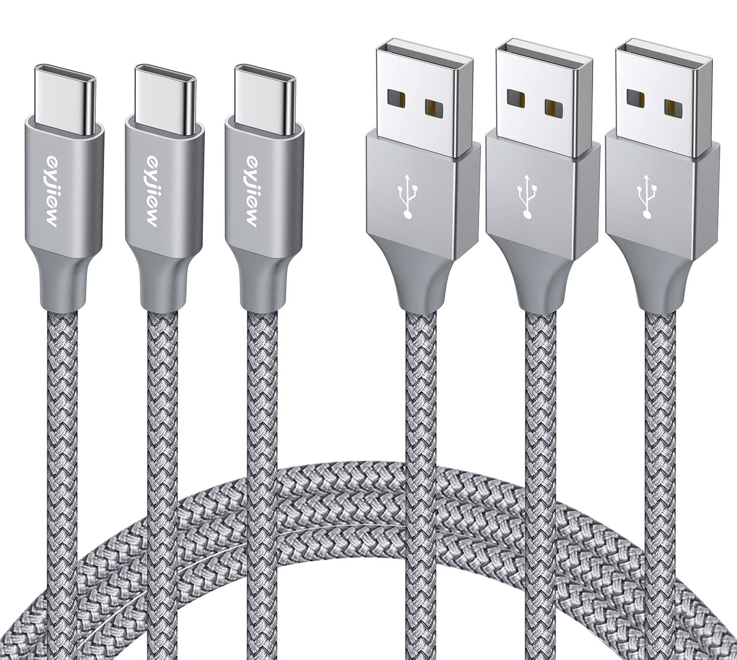 USB C Cable, Pack of 3, USB Type C 3A Fast Charging Cable for Samsung Galaxy S10 S20 S21FE S22 Plus Ultra S9 S8, A12 A13 A20e A22 A31 A32 A41 A51 A52 A71 A72, A3 A3 A3 A2 5 2016 7,Sony Xperia XZ,LG G8