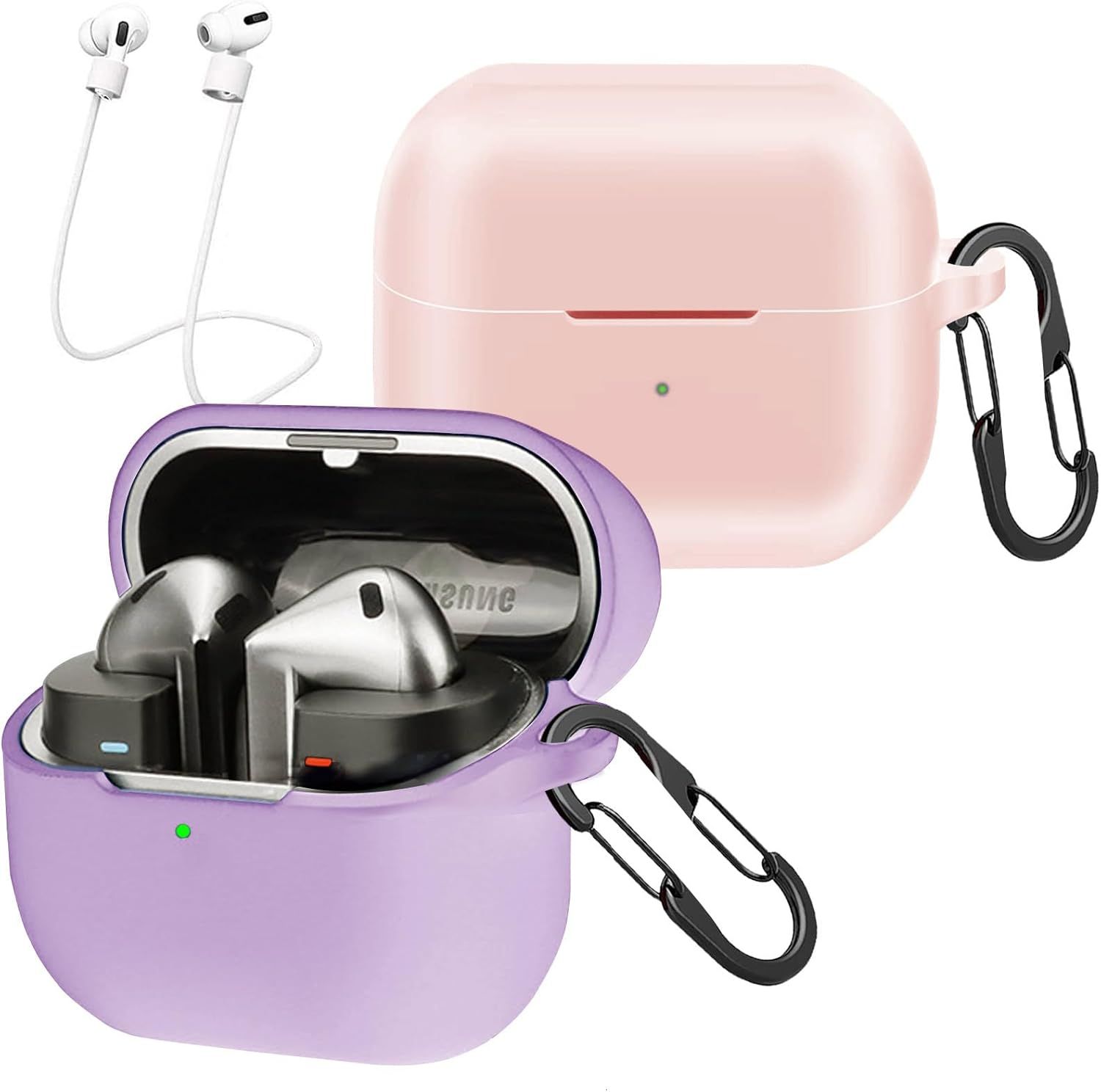 [Pack Of 2] Case Compatible With Samsung Galaxy Buds 3 / Galaxy Buds 3 Pro, Liquid Silicone Protective Case, Soft Shockproof Cover With 2 Carabiner Cord Anti-Lost ¿ Purple And Pink