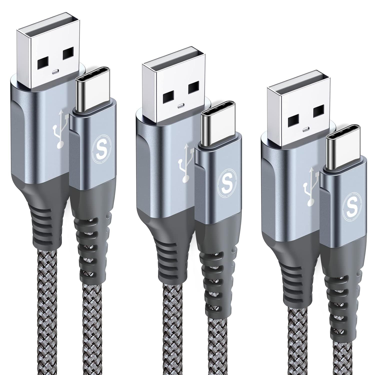 Usb C Cable [1m Pack Of 3], Usb C Cable Fast Charging Nylon Usb A To Usbc Cord For Iphone 16 15, For Samsung Galaxy S24 S20 Fe A16 A15 A13 A55, Pixel, Redmi