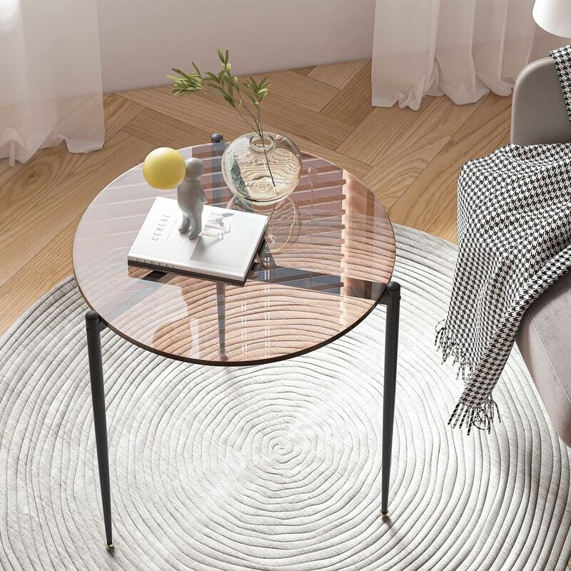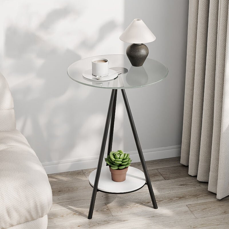 HOMCOM Table d'Appoint Guéridon Design Contemporain Bout de Canapé étagère Verre trempé Bois Naturel