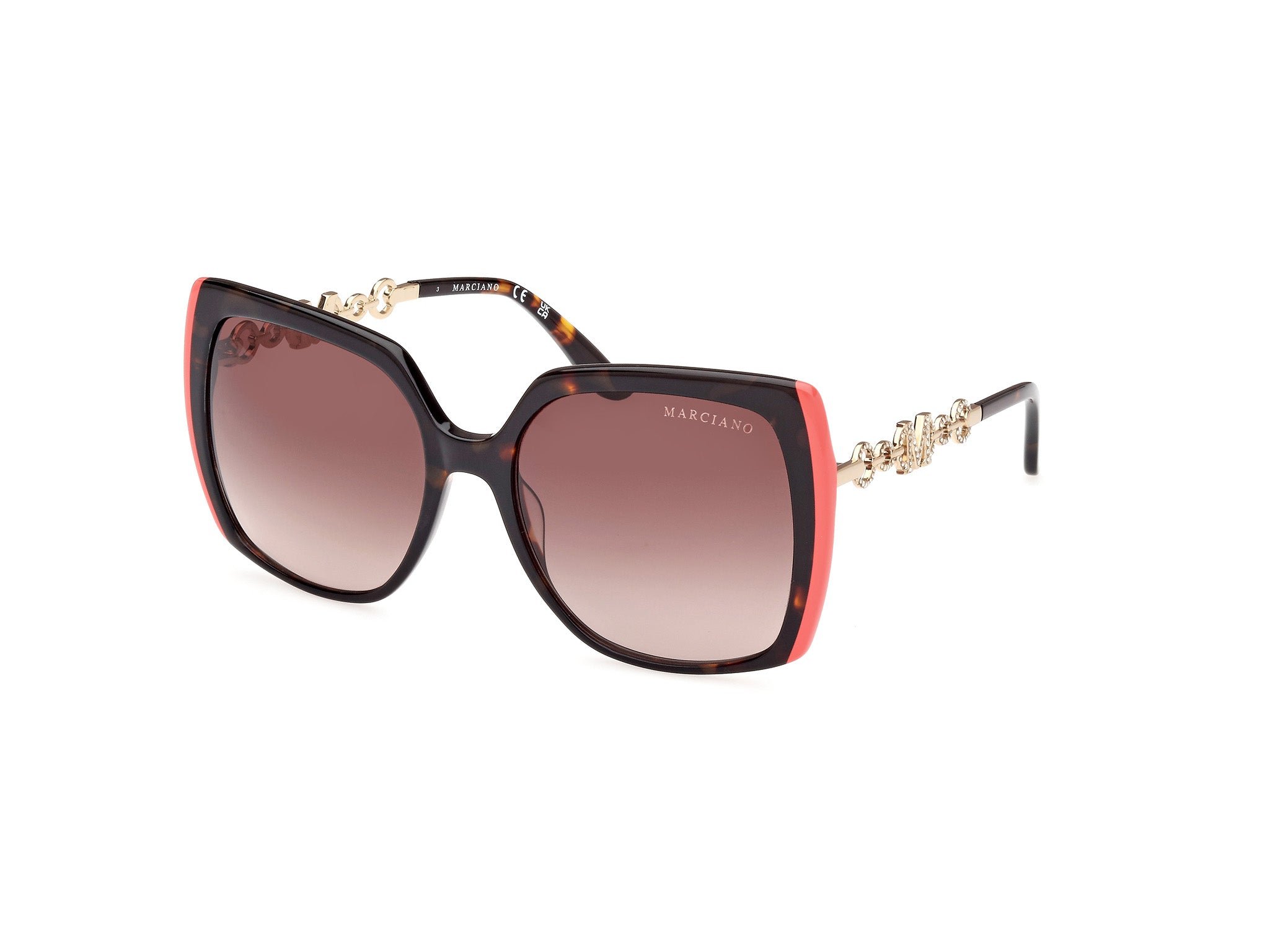 Guess by Marciano Femme GM00005 56P Lunettes de soleil Acétate Havane Vert Carré Normale Ombré