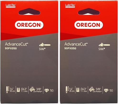 OREGON AdvanceCut - Chaîne de Tronçonneuse pour Guide-Chaîne 35 cm (14") / Pas 3/8" Low Profile/Jauge 1,1 mm/Gouges Chamfer Chisel / 50 Maillons d'Entraînements - pour Efco, Stihl & Oleo Mac(90PX)