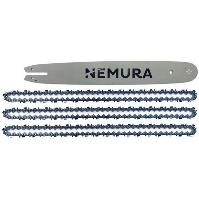 Guide de tronçonneuse 45 cm - HONO - Lot de 3 chaînes - 72 maillons - Compatible STIHL MS 291 311 391 - Pas 3/8