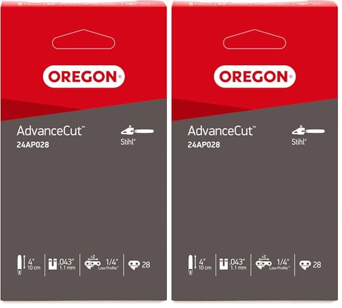 Oregon Chaîne de tronçonneuse compatible avec Stihl GTA26, pour guide mini-tronçonneuse 4 pouces (10 cm), pas 1/4” Low Profile, 28 maillons, 1,1 mm, faible rebond, gouges demi-rondes (24AP) (Lot de 2)