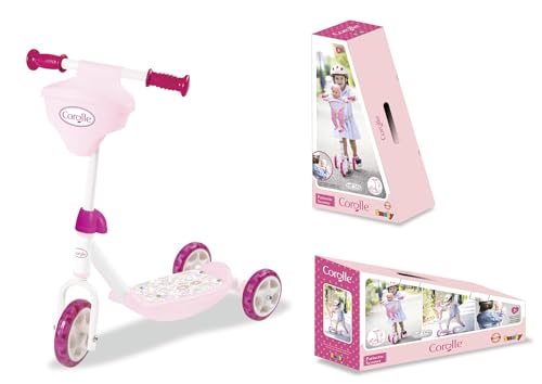 Smoby Trottinette Corolle pour Enfants - 3 Roues - Guidon réglable en Hauteur - Siège pour poupée - Plateau antidérapant - Construction Stable - À partir de 3 Ans