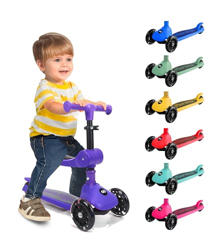 SereneLife Trottinette 3 Roues pour Tout-Petits et Enfants, Siège Pliable, Roues LED, Guidon Réglable, Plateforme Antidérapante, Frein Arrière, Direction par Inclinaison, Trottinette pour Enfants de