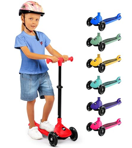 Hurtle Trottinette pour Tout-Petits avec Roues LED – Trottinette 3 Roues pour Enfants de 2 à 5 Ans, Guidon réglable de 25'' à 28'', Style Planche légère, Utilisation intérieure/extérieure, Plateau