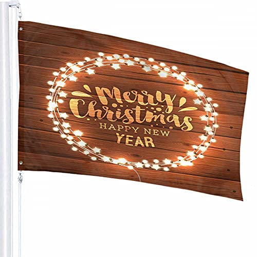 Joyeux Noël Police Drapeau Décor 0,9 x 1,5 m Lumières blanches brillantes Guirlande Ampoule Glow Garland Polyester Motif imprimé Décoration extérieure pour maisons et jardins