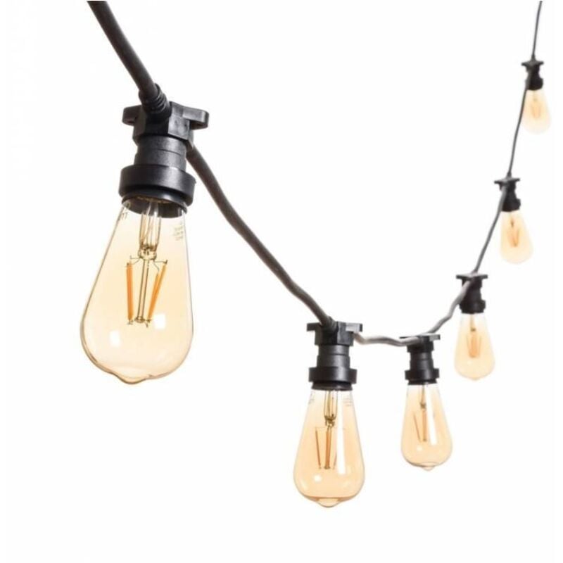 Guirlande guinguette ampoule vintage ST64 10M 2200K connectable extérieure câble noir