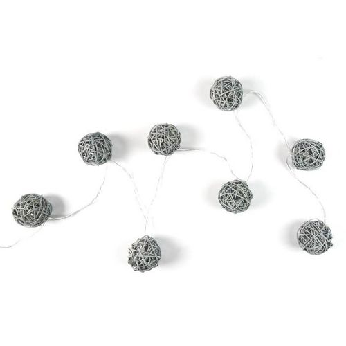 Guirlande Lumineuse 8 LED Boule Rotin 156cm Gris
