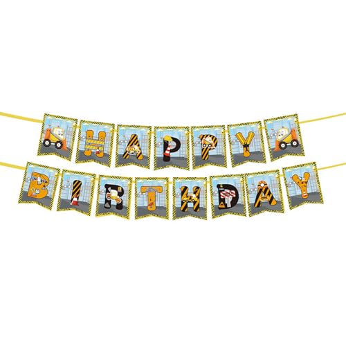 Guirlande de Chantier Happy Birthday, Pelleteuse Décoration D'anniversaire Camion/bulldozer Guirlande D'anniversaire Pelleteuse Bannière D'anniversaire Suspendue pour Chantier