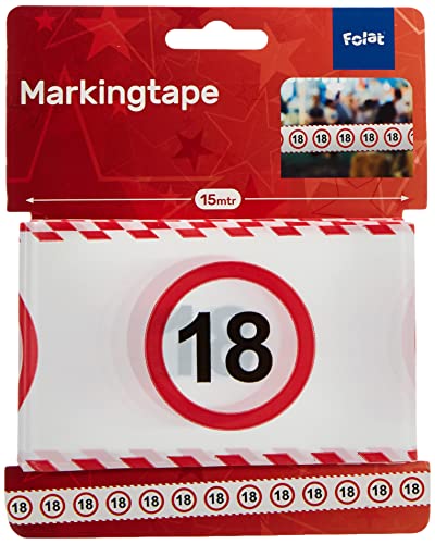 Folat Guirlande de fête Motif Ruban de Chantier orné de Panneaux de signalisation 15 m, Rouge/Blanc