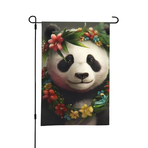 Décoration d'extérieur double face saisonnière 12 x 18 pouces, motif panda printemps-été portant une guirlande, décoration de jardin de bienvenue pour patio, ferme, porche, pelouse