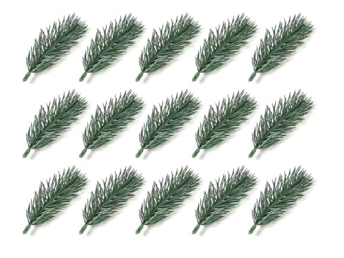 Anlising 65PCS Branches de Pin Artificielles, 10CM Fausses Branches de Sapin, Branches de Sapin Artificielles, Aiguilles de Pin en Plastique, pour Guirlande, Couronne, Décoration de Jardin (Vert)