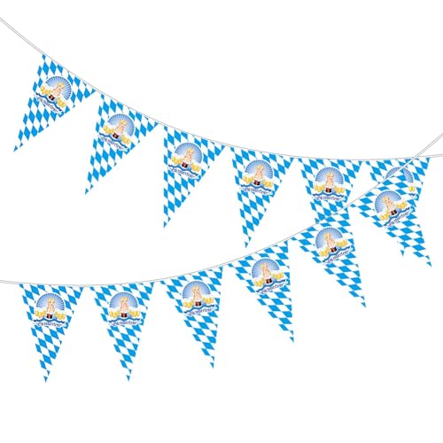 Drapeaux de festival, décorations de fête de la bière | Bannière de drapeau bavarois de 26 pieds - Accessoires de fête de la bière - Guirlande de fanions pour jardin, bar, maison, tentes