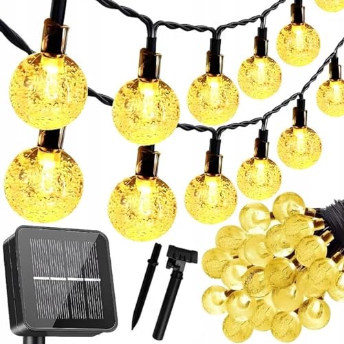 Guirlande Lumineuse Solaire de Jardin 50 LED d'extérieur Boule de Cristal Guirlande Lumineuse de fée Lumières de fée Étanche 24Ft Éclairage Décoratif pour Jardin, Terrasse, Cour, Noël (Blanc Chaud)