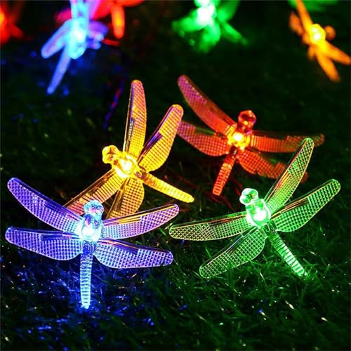 FANSU Guirlande Lumineuse Exterieure de Jardin Motif Libellule, Lumière Extérieure Jardin Solaire 8 Modes pour Intérieur/Extérieur Décoration Mariage Terrasse Balcon Pergola (Coloré,5m/20LED)