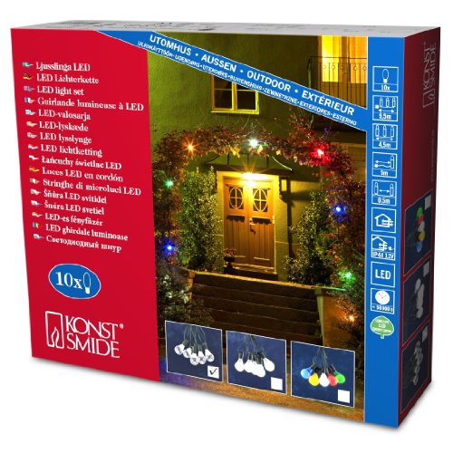 Konstsmide 4428-000 Guirlande de Jardin 10 Lampes Claires + 30 LED Blanc + Câble Vert 24 V