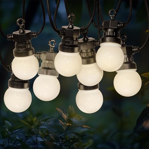 Yuusei Guirlande Guinguette LED, 30M Guirlande Lumineuse Exterieur avec 50 G40 Ampoules et 2 Ampoules de Rechange IP45 Imperméable Extérieur Intérieur Guirlande pour Jardin Patio Café - Blanc Chaud