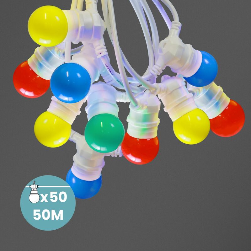 Guirlande Guinguette 50M Multicolore IP65 - Guirlande Electrique Exterieur 50 Bulbes Multicolore