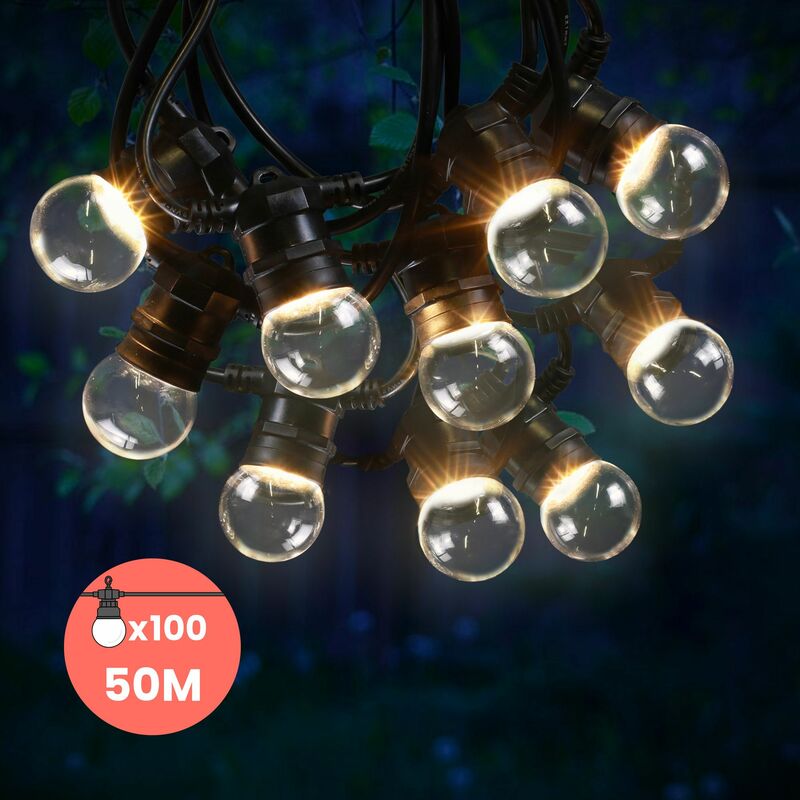 Guirlande Guinguette 100M Transparent IP65 - Guirlande Electrique Exterieur 100 Bulbes Transparents