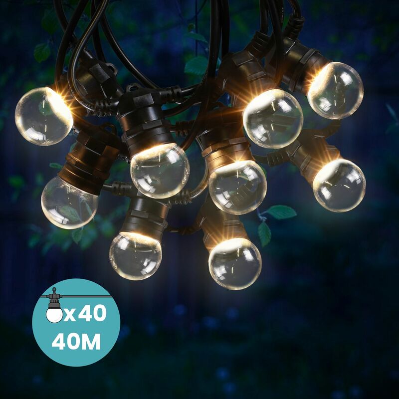 Guirlande Guinguette Extérieur 15M/50FT, Guirlande Lumineuse Exterieure avec 25+2 G40 LED Ampoules IP44 Imperméable, pour terrasse, mariage, Noël