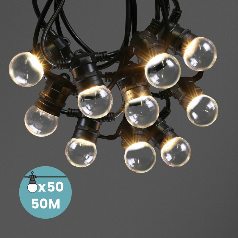 Guirlande Guinguette 50M Transparent IP65 - Guirlande Electrique Exterieur 50 Bulbes Transparents