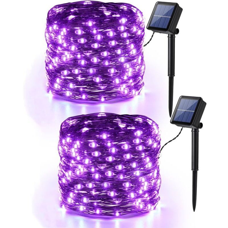 Lot de 2 Paquets Halloween Guirlande Lumineuse Solaire, 12M 100 LED Guirlande Fil de Cuivre Solaire Extérieur Violet Étanche 8 Modes Lumière Solaire
