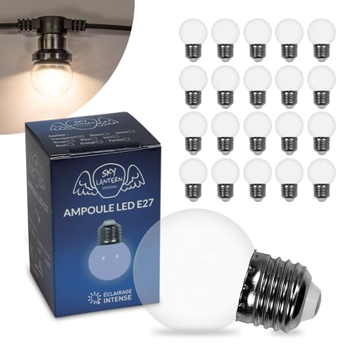 SKYLANTERN Lot de 20 Ampoules Led Transparentes conçues pour Guirlande Guinguette IP65 1,5W - Ampoule Led E27 Transparentes - Ampoule 5cm pour Guirlande Guinguette Culot E27 Transparente