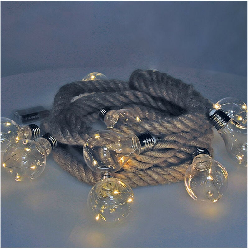 EDM - Guirlande lumineuse led avec motif ampoule sur ficelle de jute - 10 ampoules