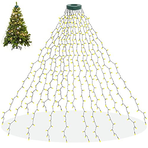 aneeway Guirlande Lumineuse Blanc Chaud 2m 400LED Guirlande Fil Cuivre 8 Modes Guirlande LED pour Lumière D'arbre de Noël de 1.5-2.4 m, pour la Décoration Extérieur, Jardin, Arbres etc