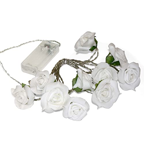 Hellum LED Guirlande lumineuse avec roses blanches, intérieur 10 LED blanc chaud, guirlande lumineuse à piles (2xAA, non incl.) avec 2,3m de long, décoration 300239
