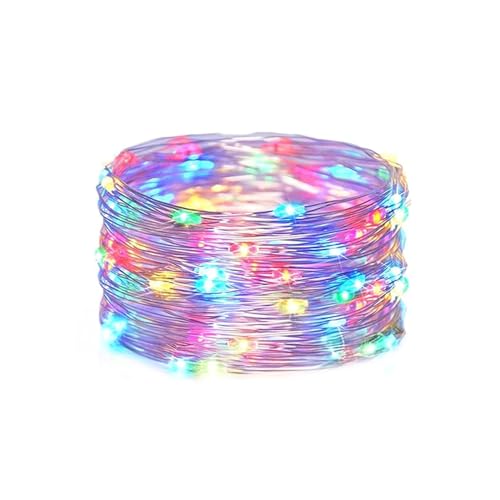 VoltShine Guirlande lumineuse LED à piles 4AA - Câble en cuir droit - RVB - 0,3 m + 10 m - 100 LED - 10 cm - Câble transparent - Télécommande 32 touches - IP44.