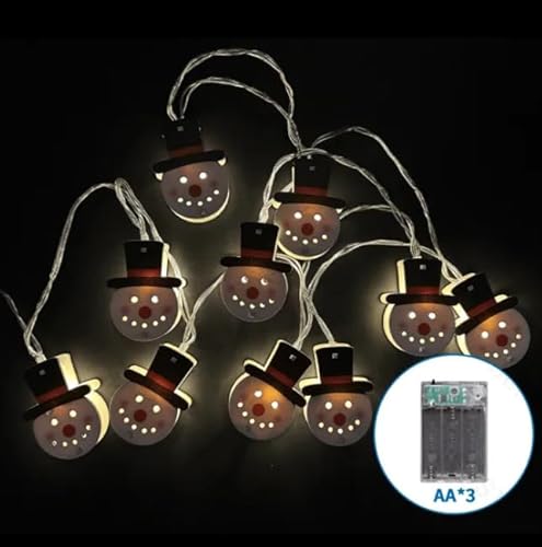 Glowster Guirlande lumineuse à piles 3AA, bonhomme de neige suspendu en bois, blanc chaud, 1,5 m, idéal pour décorer les fêtes.