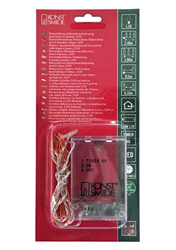 Konstsmide Guirlande Lumineuse à Micro-LED, minuterie de 6 h, 20 diodes ambrées, à Piles, intérieur, Fil Couleur Laiton - 1460-880